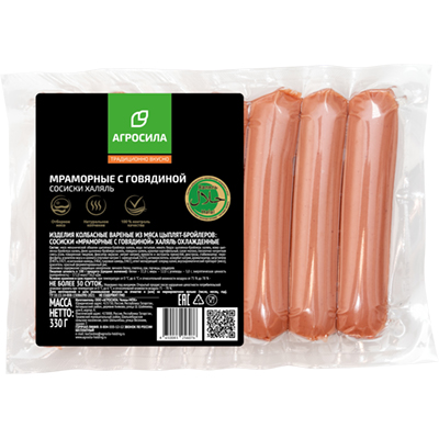 Сосиски Мраморные с говядиной халяль вак/упак 0,33 кг Агросила